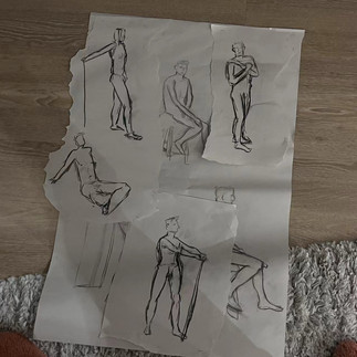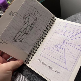 Art class was the most thrilling and intimidating part of my schedule. My language skills aren't great, so what others grasp immediately often takes me longer to understand. I am very grateful to Mr. Walker and Mr. Miall for their patience in guiding me until I fully understand what to do. In class, we learned about one-point, two-point, and three-point perspective, which are fundamental and extremely useful concepts. My favorite part was the life drawing sessions. Capturing the character's movements and general posture quickly is the most interesting aspect for me, along with using shading to distinguish light and dark areas. Unfortunately, I missed the last two drawing classes due to illness, but I continued to practice capturing character forms at home every day.